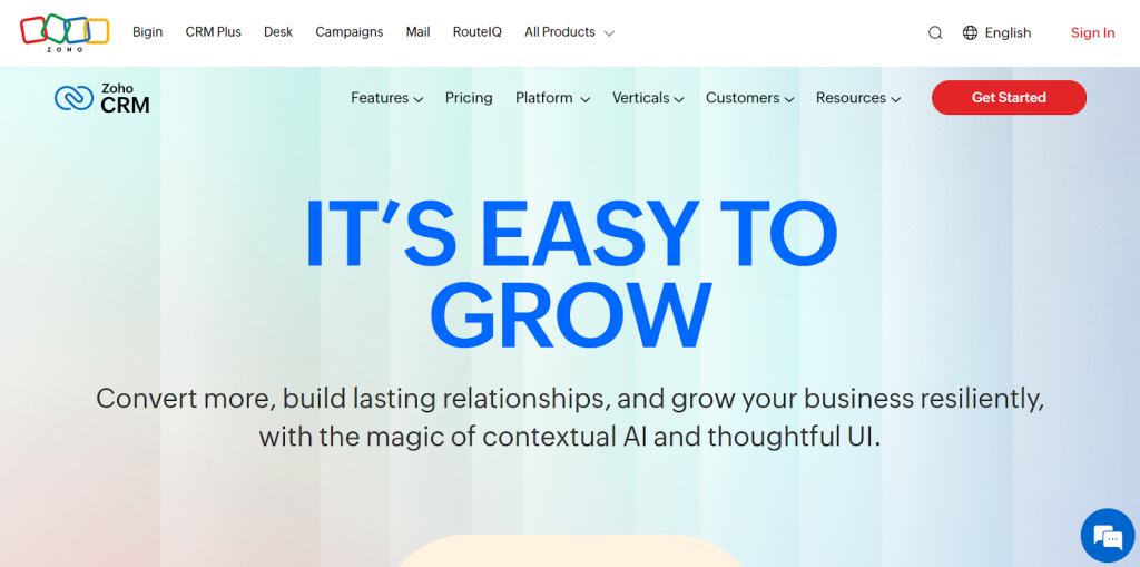 - paid plans: start from $9/month per user for Kanban view for contacts, accounts, and deals, contact lifecycle stages, built-in chat, email, & phone, custom fields, basic workflows.