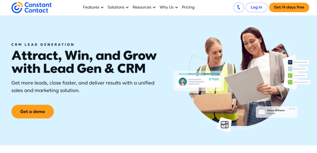 Constant Contact is widely known for its focus on communication, and its CRM feels like a natural extension of that approach. It’s a familiar environment for teams who want a straightforward way to manage customer information while continuing to send regular updates, promotions, and newsletters. The platform is easy to understand even for those who are new to CRM tools, making it appealing to small businesses that prioritize simplicity. It leans more toward marketing than sales tracking, but for businesses that revolve around outreach and communication, it fits comfortably into daily work.