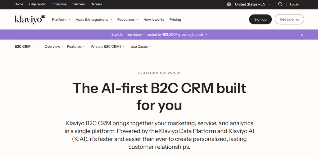 The CRM experience in Klaviyo revolves around deep behavioral segmentation and triggered messaging. The system captures browsing history, purchases, engagement levels, and lifecycle events, then allows you to build communication sequences that respond to these behaviors. Its email and SMS tools are connected to a flow builder where branching logic helps tailor messages to different customer responses.