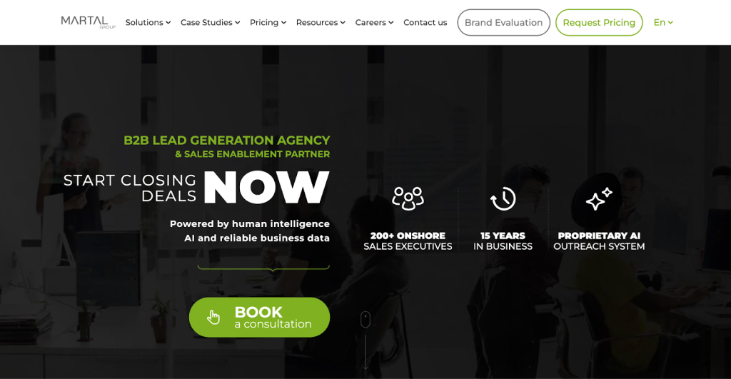 Martal Group blends human SDRs with AI-driven targeting. Their model suits tech and SaaS companies that need a fractional outbound team capable of working as an internal extension. They emphasize transparency and alignment with sales goals rather than pure lead volume.