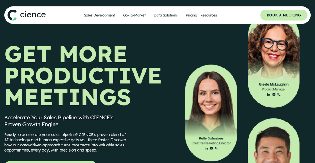 CIENCE offers data-driven outbound campaigns backed by large research and operations teams. They use analytics to test outreach angles and deliver scalable results for enterprise clients. The company also provides managed SDR services for teams that prefer full outsourcing.