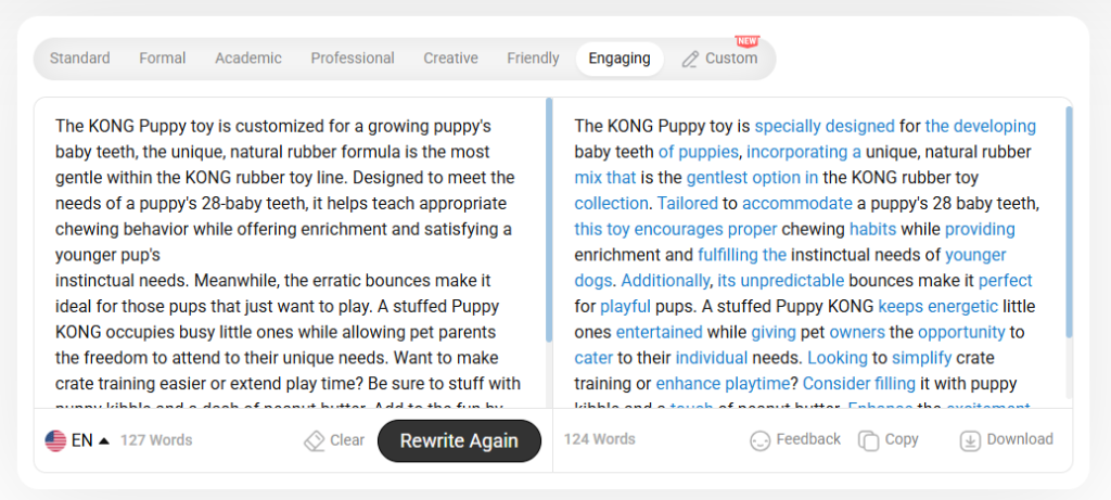 In a few seconds, the tool will generate a rewritten version of your product description that is engaging and attractive to the customer, and your chances of getting potential clients and leads will increase.
